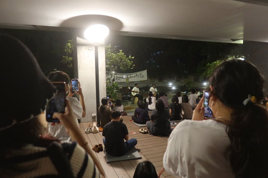 มีคนมาล้อมวงร้องฟังกันน่ารักมาก